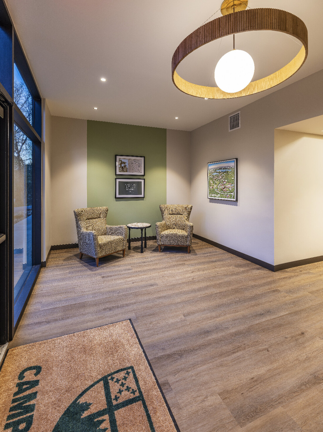 The Bishop Quin Hotel Wing at Camp Allen has been completed, providing a welcoming new space designed to enhance the guest experience. The hotel features 34 guest rooms, including six spacious mini-suites, along with an expansive library, improved air conditioning, and family-friendly central hallways. Additional meeting space on the second floor supports retreats, conferences, and special events. Named in honor of Rt. Rev. Clinton S. Quin, whose vision led to the founding of Camp Allen in 1921, the hotel carries forward his legacy of hospitality, community, and inspiration for future generations.