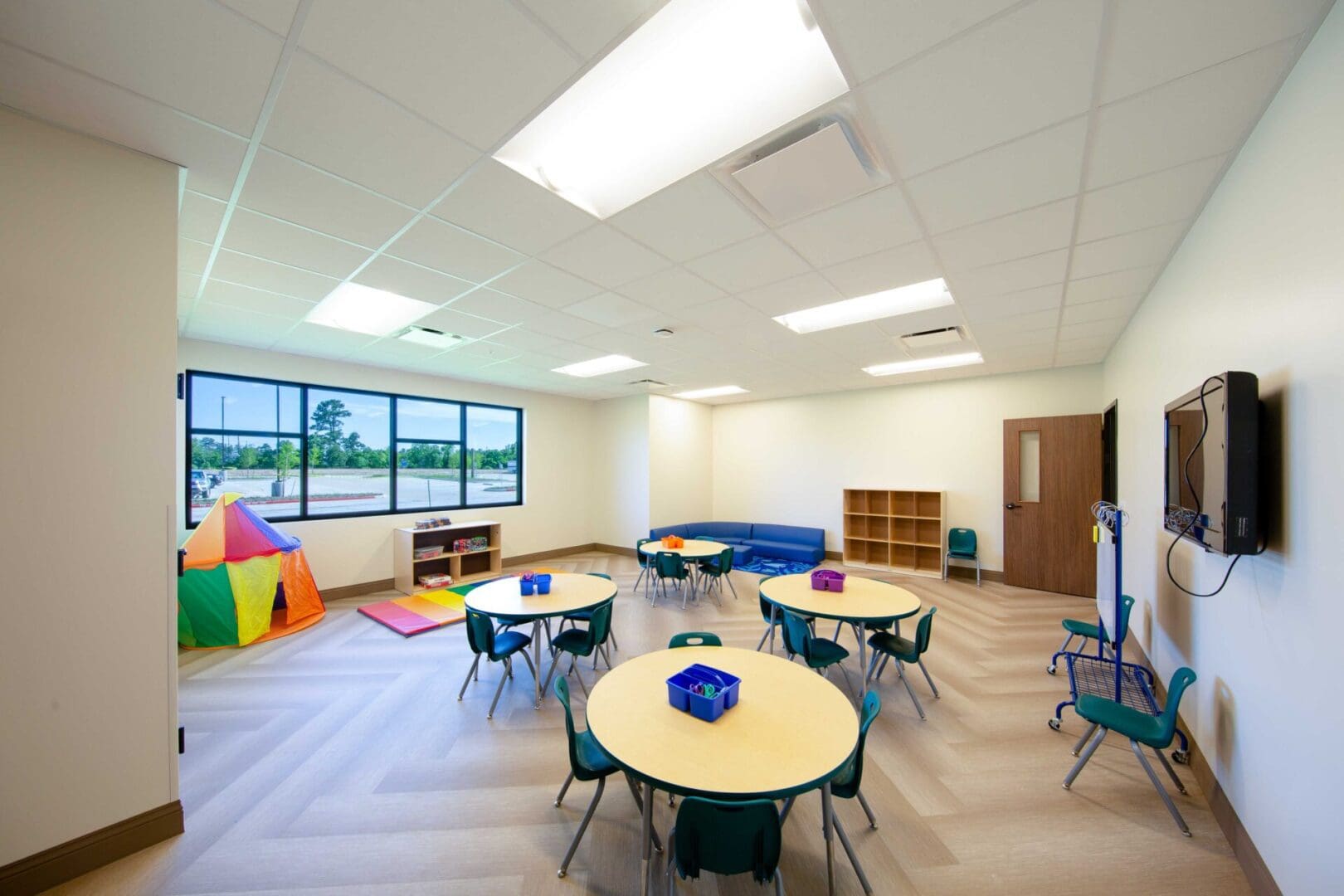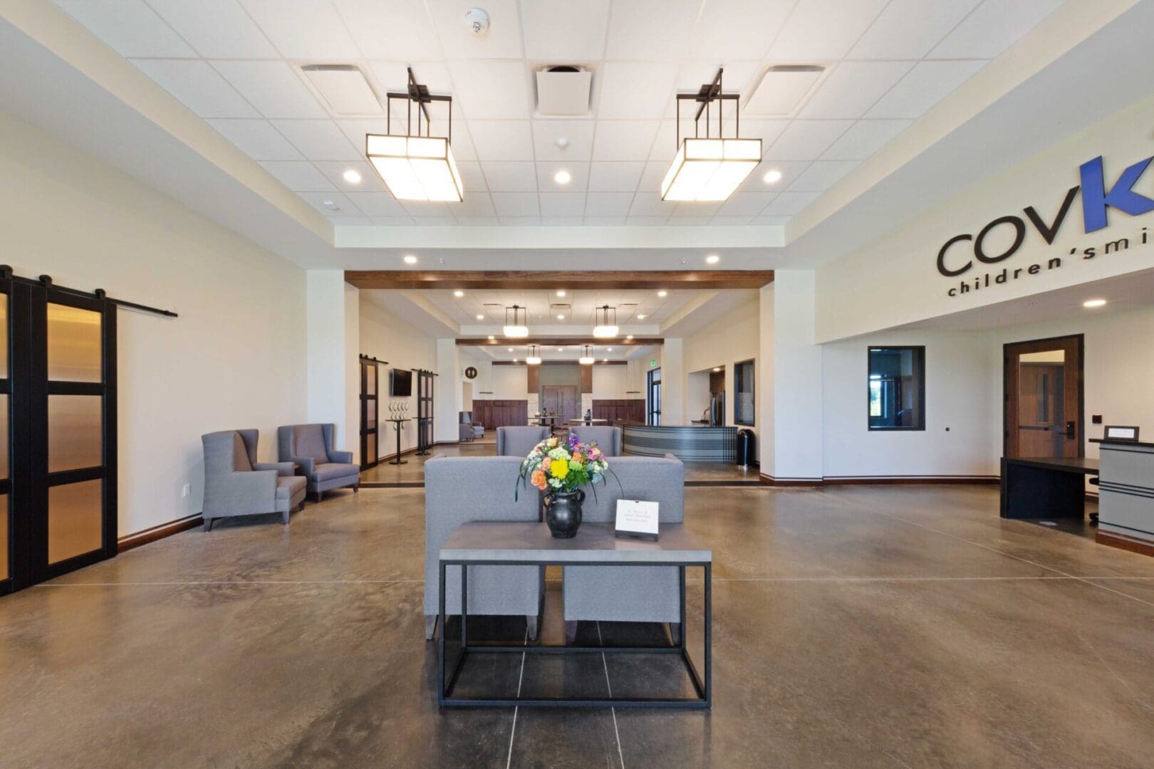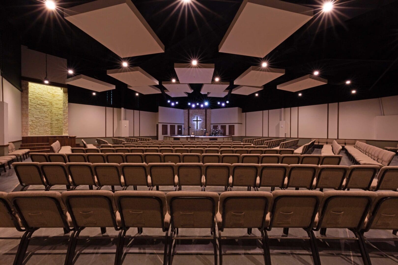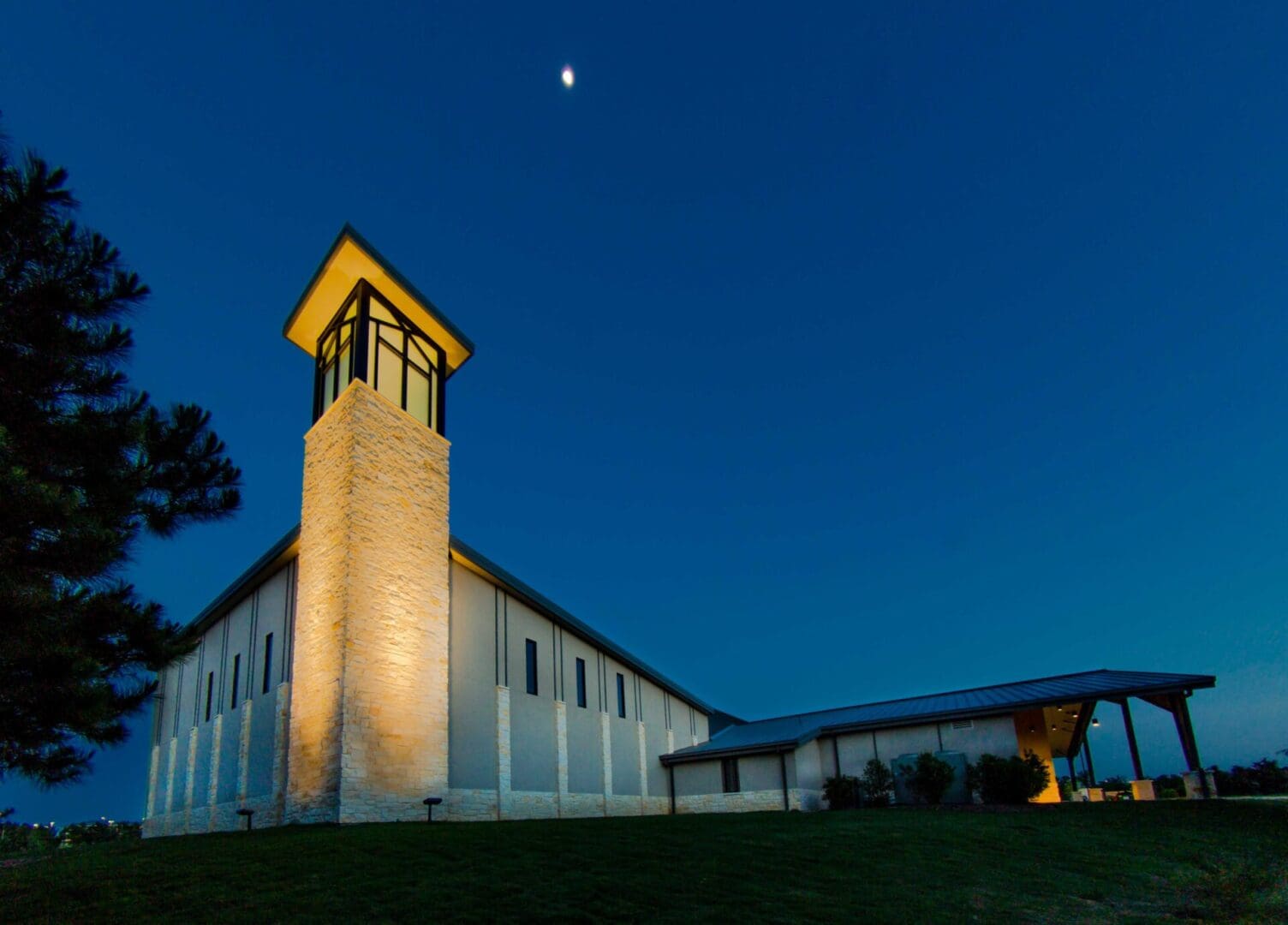 The new Covenant Methodist Church is a pre-engineered metal building with a stone and stucco façade and a standing seam metal roof. The 16,000 square-foot project includes a new 700 seat sanctuary, a commons area, separate assembly and education spaces for youth and children, and administration space