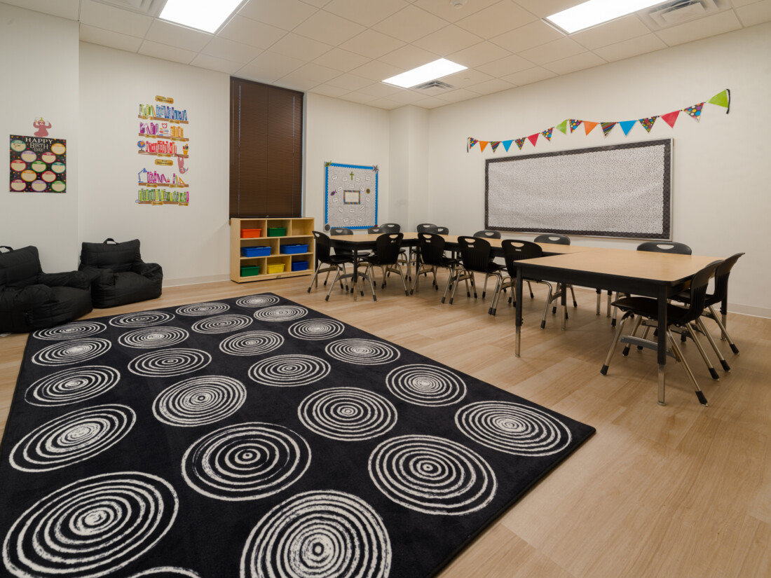Gracepoint Fellowship Baptist Church expanded its campus to accommodate their growing ministry with the addition of a Children’s Building. The new facility provides additional classrooms for GraceKids Preschool, dedicated space for their junior high ministry, five new adult classrooms, 60 new paved parking spaces, a drop-off canopy, and an outdoor play area. This addition nearly doubles the capacity for Sunday programs, supporting Gracepoint’s mission to provide a loving, safe atmosphere for all children.
