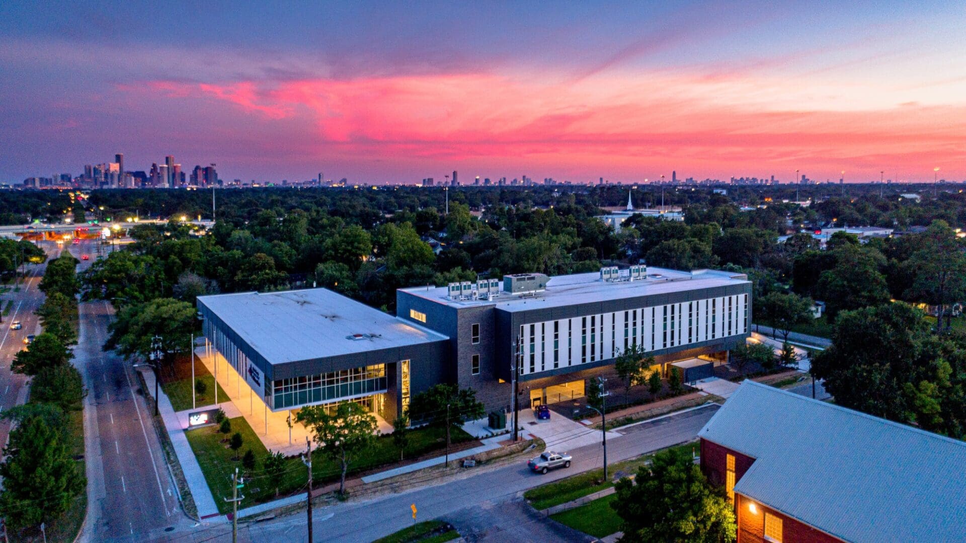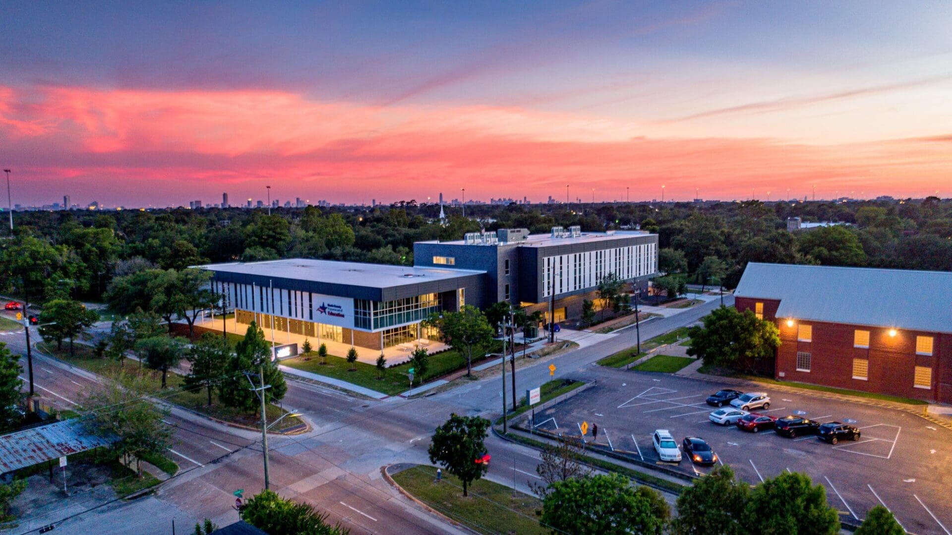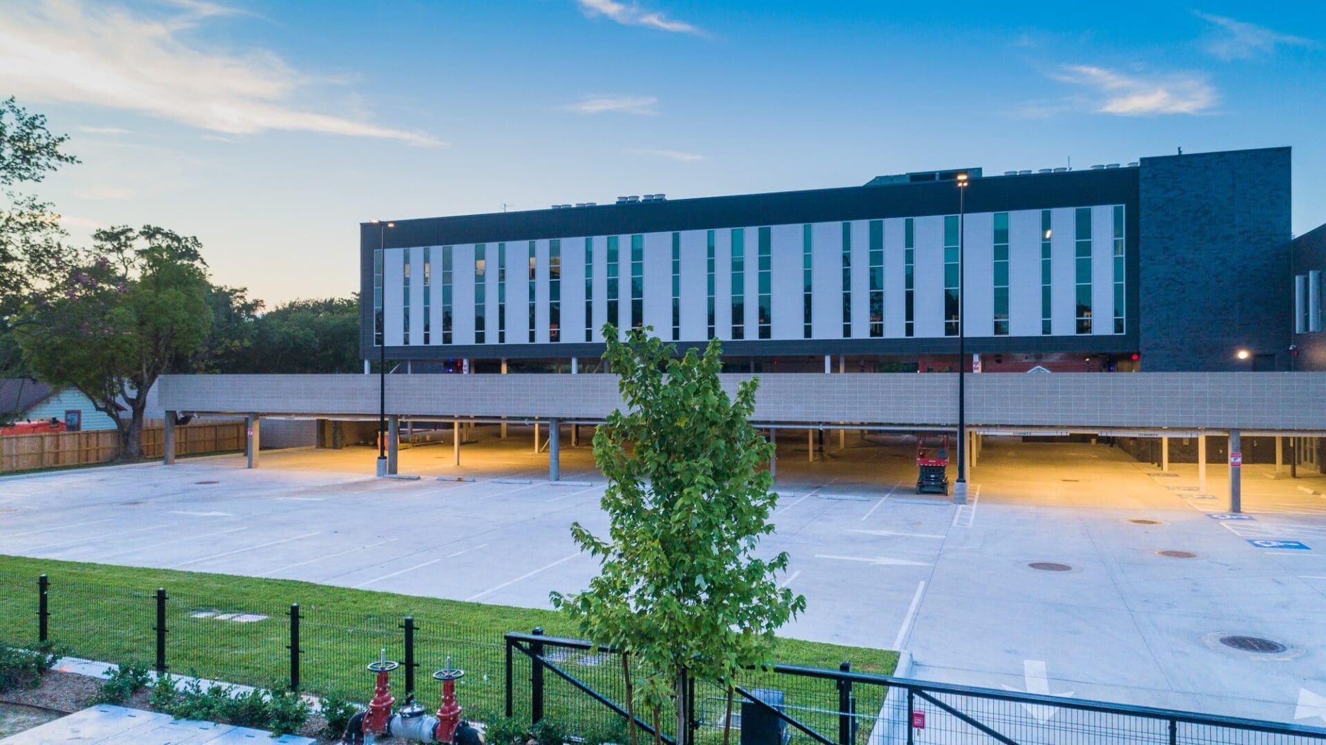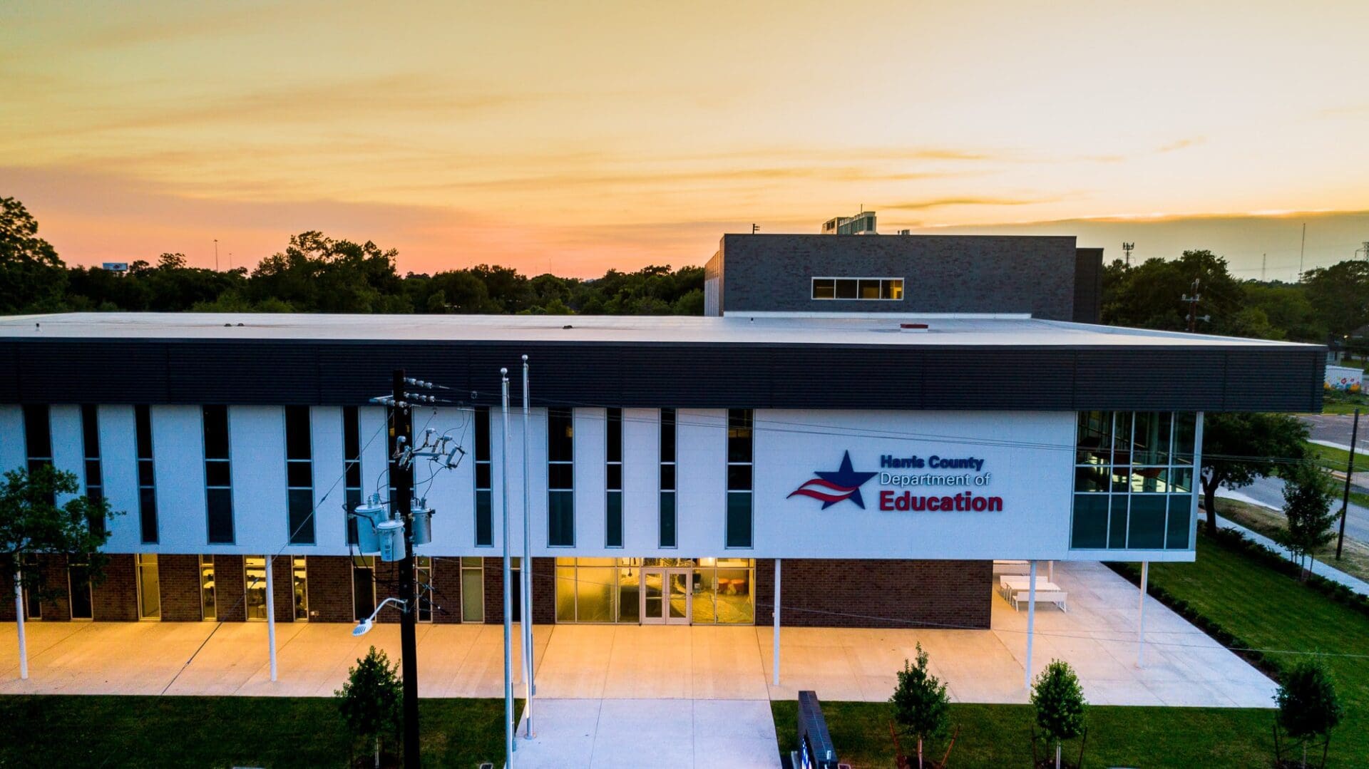 The scope of work for Harris County Department of Education’s new Adult Education Center consisted of demolishing the existing buildings on site and constructing a new four-story 51,000-square-foot facility. The new Adult Education Center provides access to free adult literacy and workforce programs, can accommodate 1,200 students, and features seventeen classrooms, five laboratories, administration spaces, multi-purpose community rooms, and a 2-level parking garage.