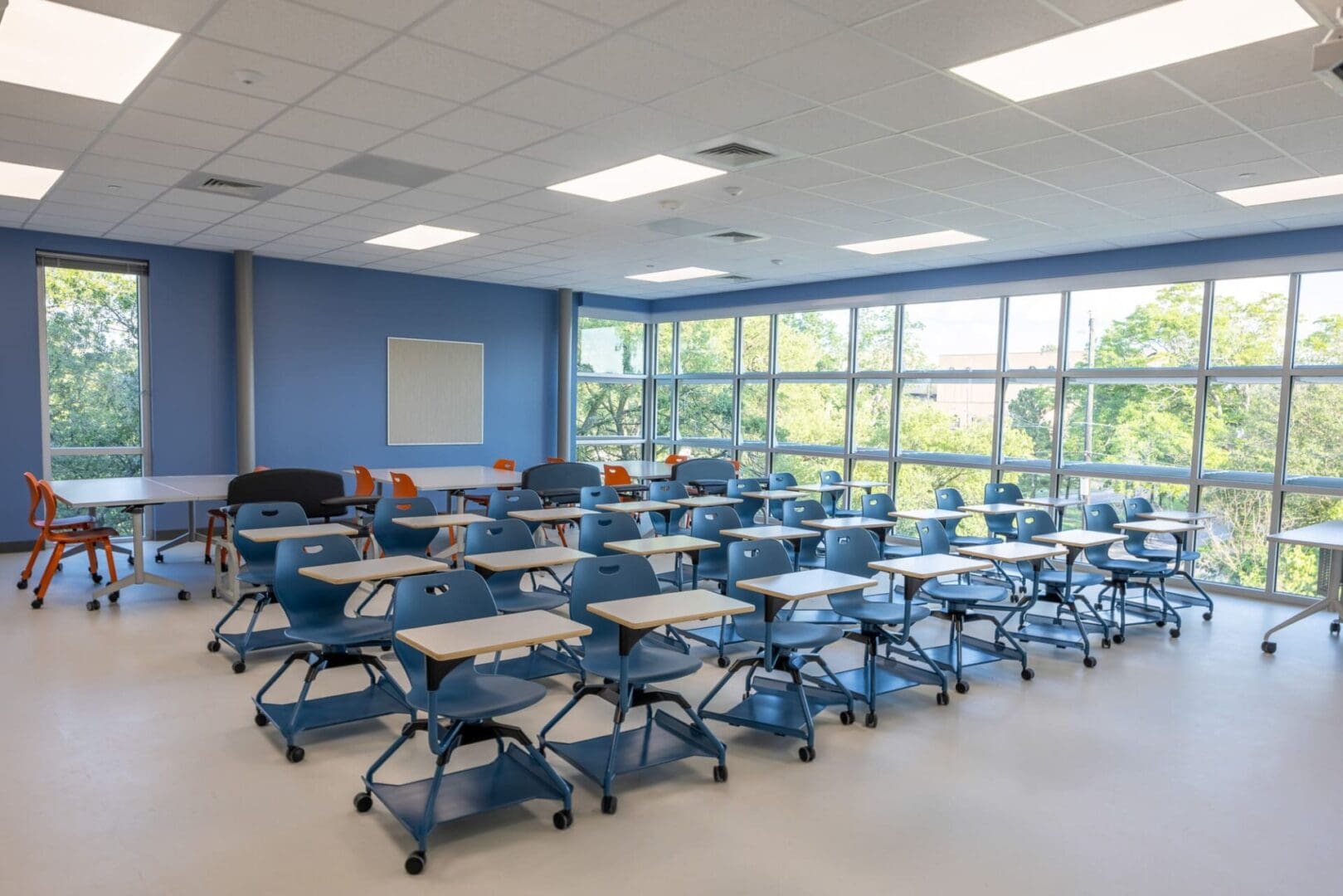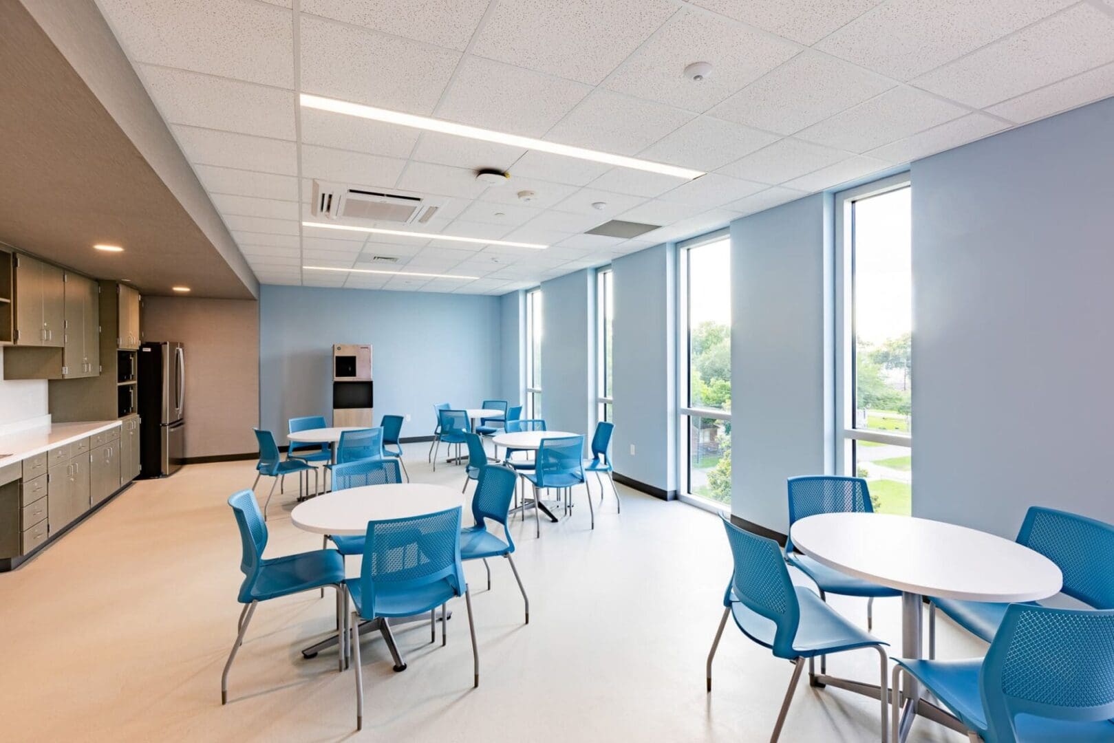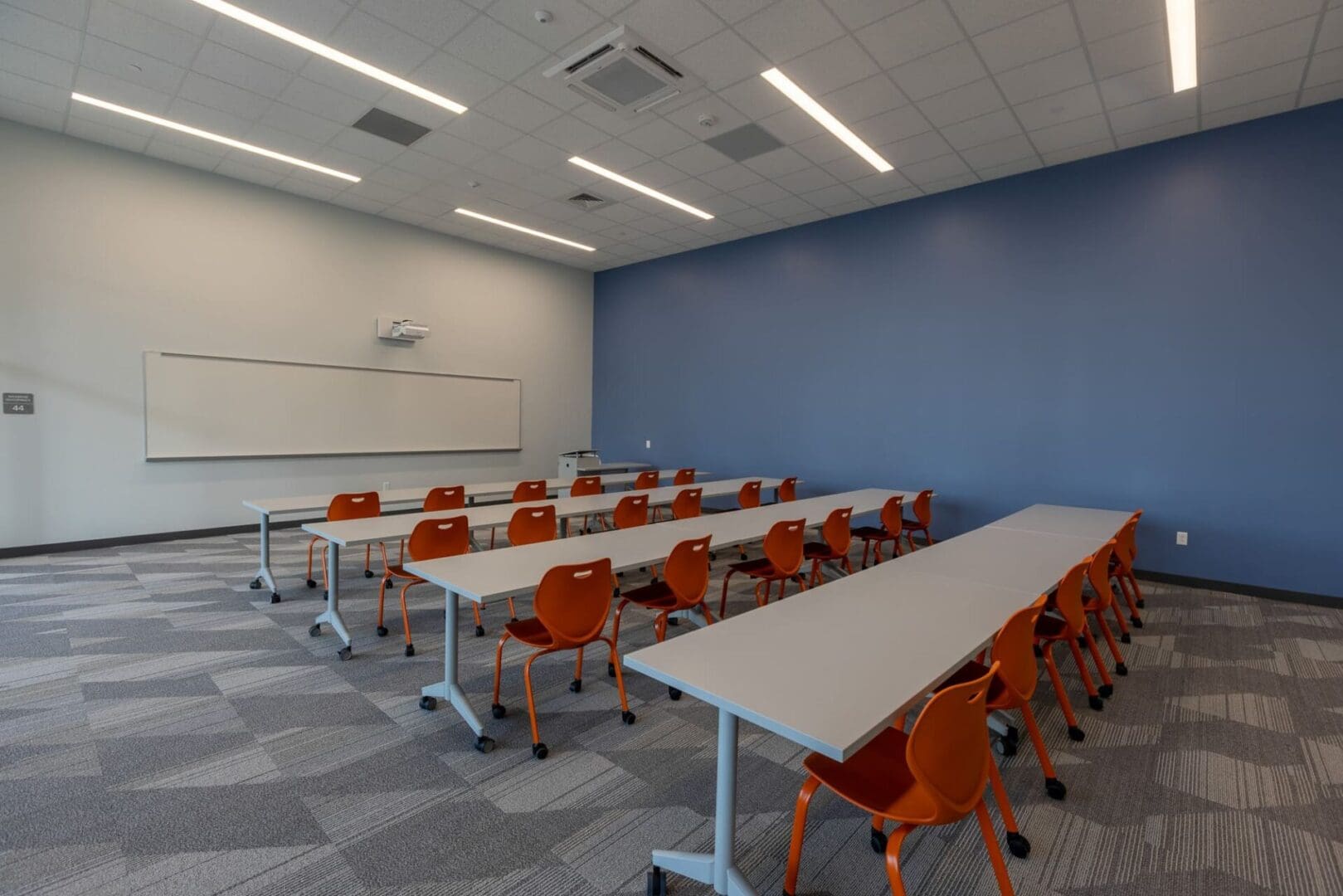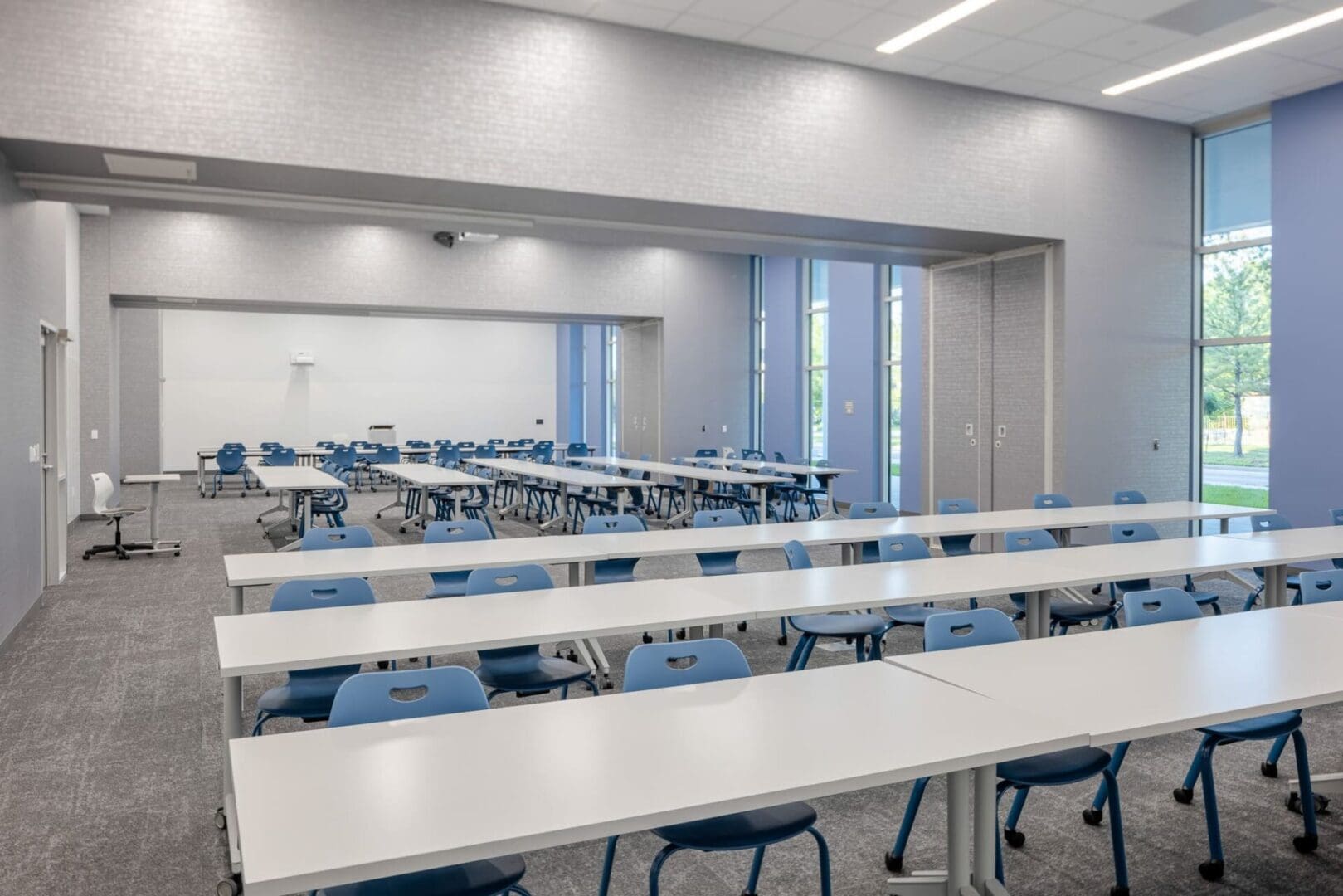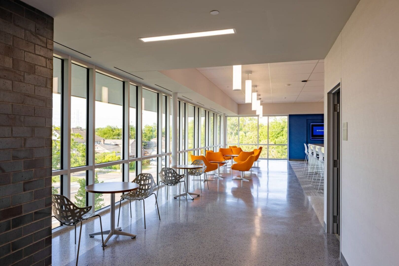 The scope of work for Harris County Department of Education’s new Adult Education Center consisted of demolishing the existing buildings on site and constructing a new four-story 51,000-square-foot facility. The new Adult Education Center provides access to free adult literacy and workforce programs, can accommodate 1,200 students, and features seventeen classrooms, five laboratories, administration spaces, multi-purpose community rooms, and a 2-level parking garage.