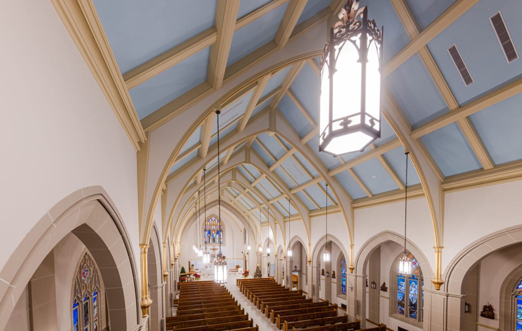 Facing a series of longtime water intrusion issues, Holy Rosary Catholic Church engaged Paradigm Construction to investigate and identify the root causes of exterior envelope failure. Detailed documentation and removal of certain materials started the process of demolition, closely followed by remediation of the slate tile roofing, adding metal step flashing and sealants, installing new wall cap flashing, repairs and replacement of damaged cast stone, masonry tuck-pointing and stained-glass window repairs. Interior repairs and upgrades for liturgical significance were also undertaken, updating the historically significant space. This stunning example of architecture received the attention and care needed to allow it to extend its usable life while respecting the architectural significance of the building.